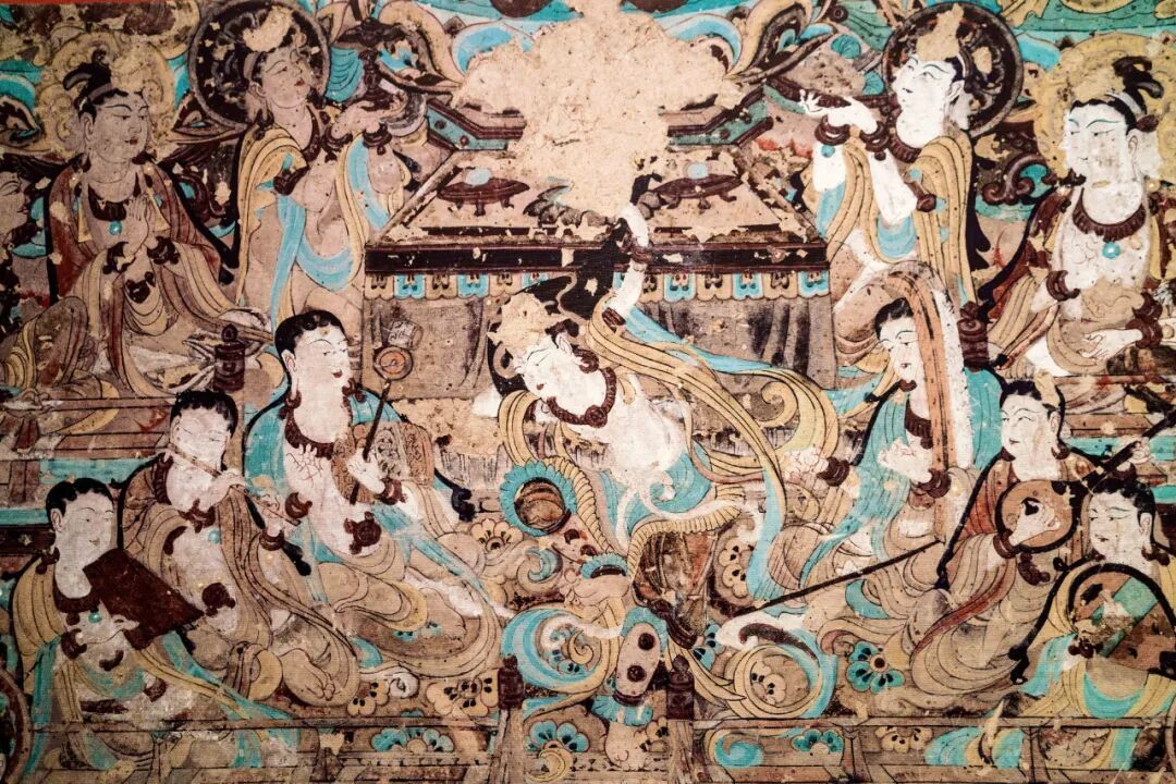 那时,长安和洛阳是全世界的两个艺术中心。画着壁画的寺观,就是两京里上千个香气缭绕的画廊。同一时期,千里之外的敦煌,也有画师们蹲在洞窟里,画满一面又一面墙壁。